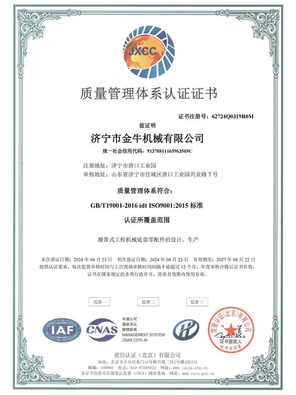唐口工業園生產基地,主要的產品:張緊裝置、引導輪、驅動輪等大型產品二、濟寧經濟開發區生產基地,主要的產品:支重輪、托輪、車架、鑄鋼、鑄鐵件等三、江蘇徐州豐縣歡口鎮工業園,主要生產鑄件(鑄鐵、鑄鋼)金牛公司產品自制能力較強,具有鑄造、鍛造、各種冷熱加工、組裝、噴漆等生產能力,生產工序齊全。